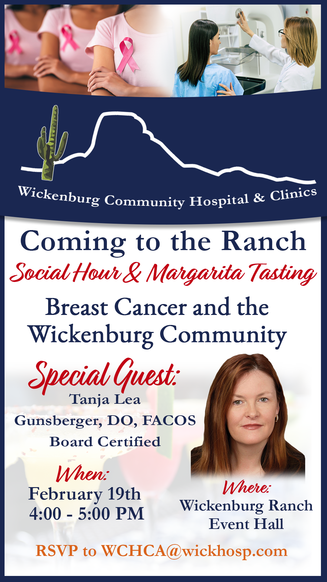 Join us for an informative community talk on breast cancer awareness, prevention, and treatment led by Dr. Tanja Lea Gunsberger, DO, FACOS. With over 20 years of surgical experience, Dr. Gunsberger will share expert insights, answer questions, and discuss the importance of early detection and personalized care.